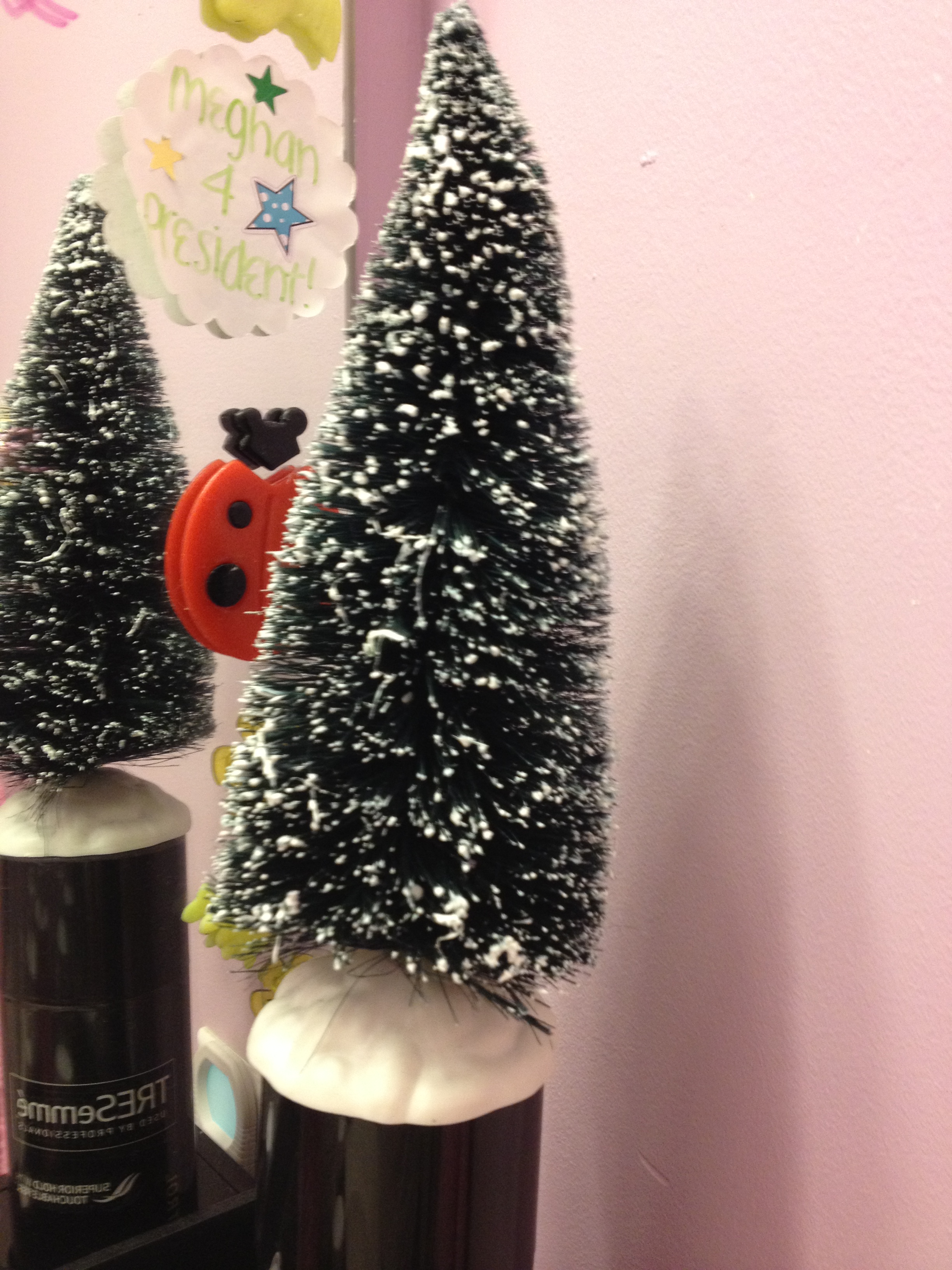 She had to have a small one — too much product in there for a large tree!